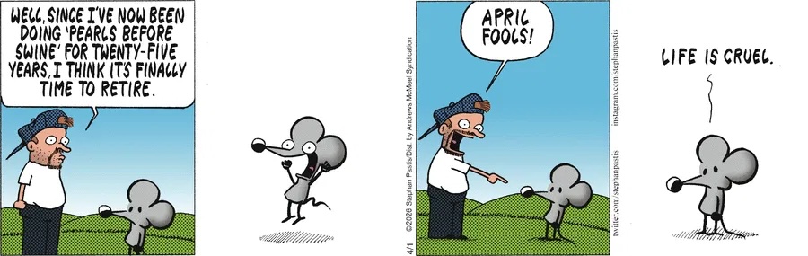 It just so happens that today is the day I have an appointment to talk with my division chair about my future plans, after 26 years at my university. Today is also April First. I have an opportunity for a cruel joke.